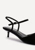 Bring a touch of elegance to your outfit with our Vogue court heels. Designed with a sleek pointed toe and a slim 4cm stiletto kitten heel. The wrap around ankle strap provides a secure fit, while the cushioned insole adds extra comfort.