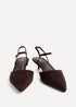 Bring a touch of elegance to your outfit with our Vogue court heels. Designed with a sleek pointed toe and a slim 4cm stiletto kitten heel. The wrap around ankle strap provides a secure fit, while the cushioned insole adds extra comfort.