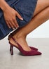 Make an entrance in our Wink court heels. Featuring a chic pointed toe in a sophisticated mix of suede and patent textures. Designed with an adjustable slingback strap for a secure fit, and finished with a slender 9cm stiletto heel and cushioned insole.