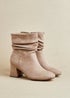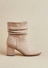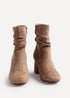 Linzi Zayda Wide Fit Mocha Faux Suede Ruched Heeled Ankle Boot
