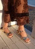 Learn moreTake your style to the next level with our Zenna low block sandals. These sandals boast crisscrossing straps, a single strap over the toes, and a delicate ankle strap. With a 2cm block heel and cushioned insole for extra comfort, these sandals are perfect for transitioning from day to night with ease..