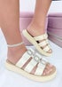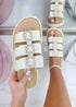 Love Lemonade Beige Crystal Buckle Triple Bow Sliders