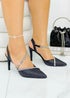 These stunning slingbacks feature dazzling rhinestone detailing across a sleek metallic base, reflecting light with every step you take.