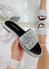 These chic sliders are adorned with dazzling crystal accents that catch the light from every angle, making them the perfect footwear for anyone who loves a little extra shine.