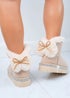 These winter-ready boots combine warmth, style, and a touch of glam with their plush faux fur lining, charming bow detail and crystal trim.