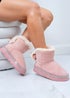 Love Lemonade Pink Crystal Faux Fur Bow Ankle Boots