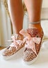 Finished with a shimmering glitter upper and stunning ribbon style laces.