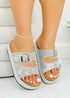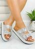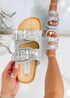 Love Lemonade Silver Crystal Mirage Double Buckle Sliders