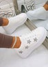 Add a touch of luxury to your everyday style with the Lemonade Crystal Stardust Chunky Trainers - a classic white lace up trainer with shimmering silver star embellishments.
