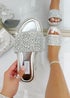 These chic sliders are adorned with dazzling crystal accents that catch the light from every angle, making them the perfect footwear for anyone who loves a little extra shine.