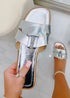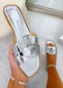 Love Lemonade Silver Sparkly Crystal Wrap Flat Sliders