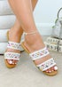 Featuring intricately woven double straps adorned with multicoloured embellishments, these sliders offer both comfort and standout style.