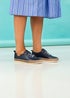 Meet the Evie navy leather plimsol - the ultimate blend of style and comfort. With a soft leather upper and chunky sole, they provide a comfortable and supportive fit ideal for everyday wear. Perfect for relaxed summer outings or leisurely strolls, ensuring all-day comfort and style.