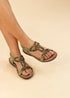 Make a colourful statement in the Mariella khaki sandal. Embellished with colourful beads and diamante details, this glitzy sandal is the perfect summer accessory. Featuring a padded insole and elasticated ankle strap, you are guaranteed a secure and comfortable fit all day.