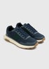 With a modern take on a classic design, these navy Retro Stripe trainers are a must-have for your footwear collection. Featuring a contrasting white stripe on the side, these lace-up trainers are crafted with airy textile linings.