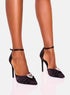 Public Desire Meant To Be Black Satin Diamante Heart Court Stiletto Heel