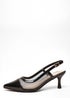 Quiz Black Wide Fit Faux Leather Mesh Sling Back Heels