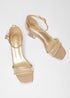 Quiz Gold Wide Fit Mesh Front Heeled Sandals