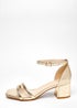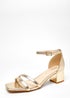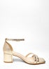Quiz Gold Wide Fit Strappy Low Block Heeled Sandals