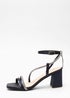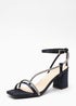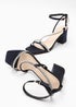 Quiz Navy Satin Diamante Block Heeled Sandals