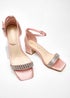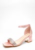 Quiz Pink Wide Fit Satin Diamante Low Block Heeled Sandals