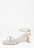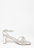 Quiz Silver Wide Fit Diamante Strap Block Heels