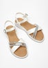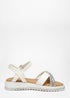 Quiz White Faux Leather Diamante Cross Strap Sandals