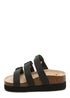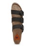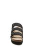 The Rocket Dog Black Astor Colour Sandals are stylish and comfortable footwear. These open-toe sandals feature three adjustable black straps with buckles across the top, ensuring a secure fit. The cushioned footbed adds comfort, while the multi-coloured design adds a touch of flair. The flat black sole complements the straps, and from the side view, you can see a slight heel that provides subtle elevation at the back. Whether for casual outings or warm-weather strolls, these sandals combine practicality and fashion.