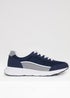 Elevate your casualwear with these retro-style trainers from Threadbare. Made from soft faux suede and textured fabric, they feature contrast panels for a sporty look with a touch of vintage style. The cushioned insole keeps your feet comfortable all day, while the sturdy sole with rubber grip adds support and durability. Perfect for cooler months, these versatile trainers are easy to wear with jeans or joggers for everyday casual style.
