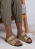 Timeless slip-on slide design with adjustable double buckle for a tailored fit. Flexible, lightweight and the perfect co-ordinate for your summer wardrobe. With a comfort heel patch and moulded footbed to support the natural foot shape, summer - here we come!