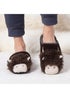 Totes Isotoner Brown Novelty Applique Mule Slippers