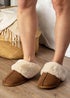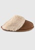 Totes Isotoner Tan Ladies Real Suede Mule with Fur Cuff