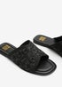 Where's That From Alaska Black Raffia Floral Embroidery Flat Sandals