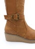 Stay stylish and comfortable all day with our Ayleen Wedge Heel Knee High Boots with Elastic Panel. These boots are a perfect addition to your footwear collection, combining style and functionality for a chic look. Key Features: Effortless Style: The knee-high design and wedge heel of these boots ensure they make a statement wherever you go. They effortlessly elevate your outfit, adding a touch of sophistication and style. All-Day Comfort: Our boots are designed with your comfort in mind. The wedge heel provides stability and support, while the elastic panel at the side allows for flexibility and a snug fit. You can wear them all day without sacrificing comfort. Secure Fit: The elastic panel at the side of the boots ensures a secure fit around your calves. This allows for easy on and off, while also providing a customized and comfortable fit. Durable Construction: Made with high-quality materials, our Wedge Heel Knee High Boots are built to last. The sturdy sole and reliable stitching ensure durability, making them practical for everyday wear. Versatile and Practical: These boots are perfect for various occasions and can be easily paired with different outfits. Whether you're dressing up for a night out or dressing down for a casual day, these boots add a touch of elegance and versatility to your look. On-Trend Design: Featuring a sleek knee-high silhouette and a flattering wedge heel, these boots keep you in style. The elastic panel adds a modern and edgy element that sets them apart from regular knee-high boots. Specifications: Material: Faux Leather Colours: Available in multiple colours Closure: Side zipper Heel height: 2 inches Calf circumference: Adjustable with elastic panel Sizes available: Available in multiple sizes Invest in our Ayleen Wedge Heel Knee High Boots with Elastic Panel for a perfect combination of style, comfort, and versatility. Enjoy the joy of effortless fashion and confident strides with every step you take. Get yours today and embrace the allure of knee-high boot fashion. Where's That From crafts footwear with the utmost care with YOU in mind. Our in-house unique designs offer the latest trends with supreme luxury comfort and unparalleled quality. Looking for ideas on how to put together an outstanding look? Follow our social media accounts for daily inspiration!