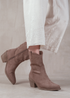 Learn moreStay stylish and comfortable all day with our Rodeo Boots. These boots are a perfect addition to your footwear collection, featuring a chic design that you can dress up or down. Key Features: Effortless Style: The sleek and minimalist design of these boots ensures that they complement almost any outfit you wear. They are perfect for dressing up or down and exude casual elegance that adds an extra flair to your style. All-Day Comfort: Our boots are built with your comfort in mind. They feature a soft and comfortable interior lining that provides maximum comfort, ensuring you can wear them for long periods with ease. Durable Construction: Our Slip On Ankle Boots are made with high-quality materials that ensure long-lasting durability. They feature a sturdy construction and reliable stitching that makes them practical and sustainable for everyday use. Versatile and Practical: These boots are suitable for all occasions, whether you're going for a casual or more dressed-up look. Their versatile design makes them perfect for pairing with jeans, skirts, or dresses - making them an ideal choice for any outfit. Specifications: Material: Faux Suede Closure: Side Zipper Heel height: 2 inch Toe shape: Pointed Toe Sizes available: Available in multiple sizes Invest in our Rodeo Boots for a perfect combination of style, comfort, and versatility. Enjoy the joy of effortless elegance and comfort with every step you take. Get yours today and step out with confidence and style!Where's That From crafts footwear with the utmost care with YOU in mind. Our in-house unique designs offer the latest trends with supreme luxury comfort and unparalleled quality. Looking for ideas on how to put together an outstanding look? Follow our social media accounts for daily inspiration!