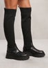 Where's That From Black Cleo Knee High Knitted Sock Boots