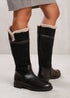 Where's That From Black Kendra Faux Fur Knee High Boots