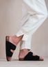 Where's That From Black Nubuck Willow Flat Sandals
