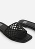 Where's That From Black PU Chelsea Woven Strap Flat Sandals