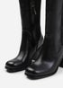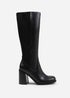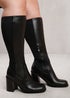 Step into the spotlight with our Zhuri Stretch wide calf Block Heel Knee High Boots in wide fit. These stylish boots are designed to make a statement and add a touch of sophistication to any outfit.