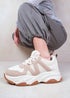Step out in style with our Mesh Knit Chunky Sole Trainers With Suede Detailing. These trainers are perfect for adding a touch of trendy and sporty sophistication to any outfit.
