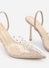 Effortless elegance with our Visenya Perspex diamante slingback high heels - the epitome of glamour and style. These high heels are designed to make a statement and add a touch of sparkle to any outfit, while still providing comfort for long-lasting wear.