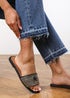 Introducing our Frankii strap sandal with front straw strap lock detail, the perfect combination of style and comfort. These sliders are an essential addition to your footwear collection, offering versatility and elegance for any occasion.