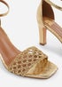 Where's That From Gold PU Naia Wide-Fit Strappy Block Heel