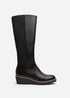 Step out in comfort and style with these Journey Knee High Wedge Boot, perfect for everyday wear. Featuring a sleek faux leather finish, soft inner lining, and supportive wedge heel, they blend practicality with understated elegance. The side zip makes them easy to slip on and off, ideal for busy days or dressy evenings.
