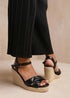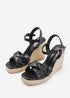 Where's That From Lima Black Wide-Fit Padded Strappy Espadrille Wedges
