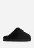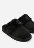 Where's That From Lounge Black Suede Slippers With Fur Trim