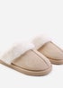 Where's That From Lounge Cream Suede Slippers With Fur Trim