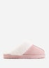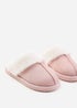 Where's That From Lounge Pink Suede Slippers With Fur Trim