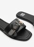 Where's That From Lucy Black Slip-On Sandals with Buckle Accent